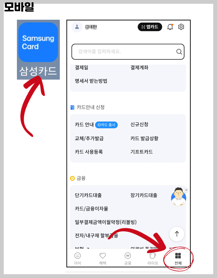 모바일 : 삼성카드 앱을 통해 입장합니다.